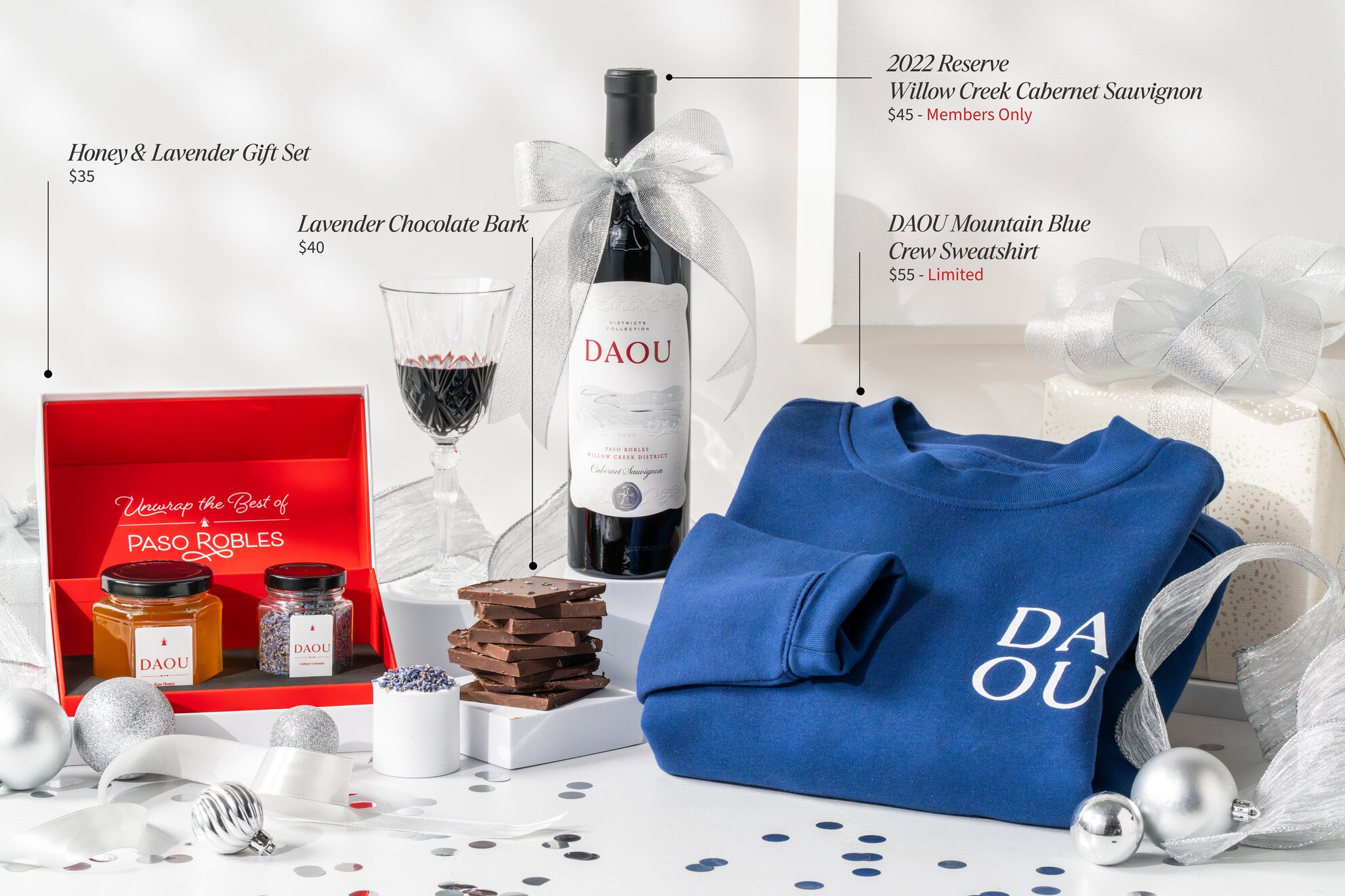 Whether you're gathering with loved ones or selecting a thoughtful gift, DAOU brings warmth and elegance to every celebration. In addition to our finest wines, we've curated a collection of locally crafted gifts.